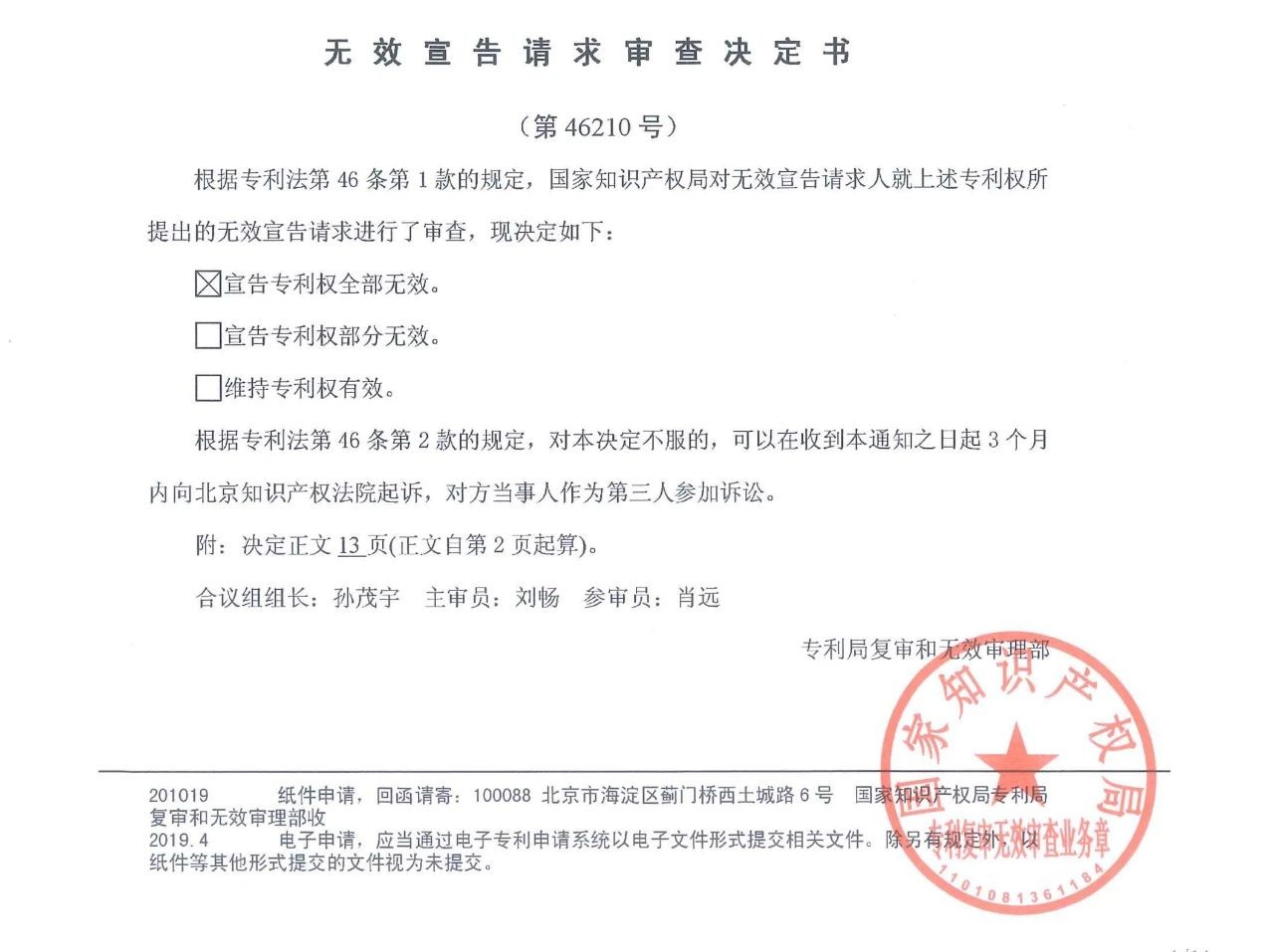 早前,針對(duì)此專利,重慶金山、松崗醫(yī)院等曾向國家知識(shí)產(chǎn)權(quán)局提出無效宣告請(qǐng)求,但在第 28369 號(hào)無效審查決定中,該專利被維持有效。