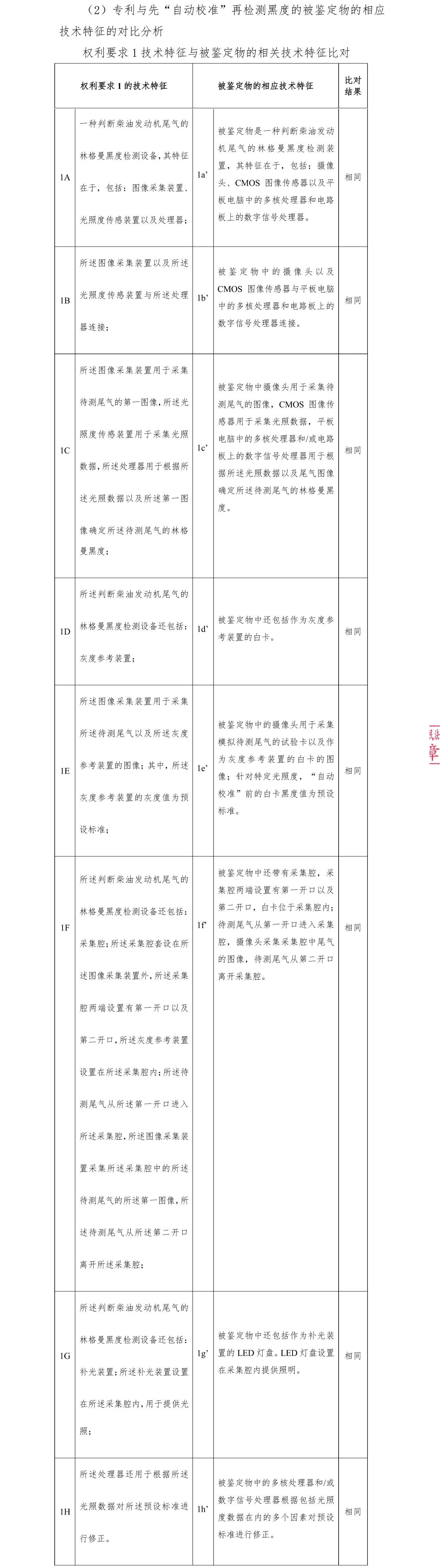對(duì)此,庭審過程中各方都選擇了國家工業(yè)信息安全發(fā)展研究中心作為鑒定機(jī)構(gòu),對(duì)被告火眼公司的相關(guān)產(chǎn)品進(jìn)行鑒定。下圖為鑒定機(jī)構(gòu)出具的本專利權(quán)利要求1技術(shù)特征與被鑒定物的相關(guān)技術(shù)特征比對(duì)的一部分結(jié)果,從中可以看出所有比對(duì)項(xiàng)的技術(shù)特征都相同。