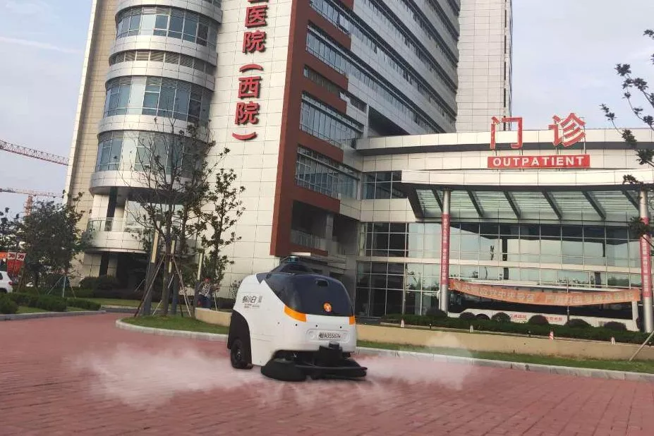 “蝸小白”無人清掃消毒車,由天使百人會合投企業(yè)北京智行者科技有限公司研發(fā)制造,每小時能清掃3500平米,1臺可以代替4-6名保潔員,負責(zé)整個醫(yī)院的室外路面清潔,每天定時噴灑消毒液進行消毒,對于重點區(qū)域進行多次消毒。保潔人員只需每天進行簡單的維護,充電、倒垃圾、添加消毒液、車身消毒等工作,不用長時間暴露于醫(yī)院工作場所,極大的減少被傳染風(fēng)險。目前,蝸小白已在全國多個重點新型冠狀肺炎患者收治醫(yī)院投入使用。