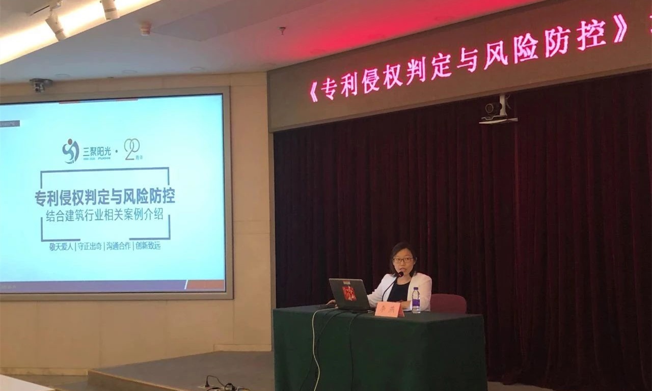 近日,受中建一局集團建設(shè)發(fā)展有限公司邀請,三聚陽光旗下易聚律所主任律師李燕為其專利工作人員做了《專利侵權(quán)判定與風險防控》的專題分享。