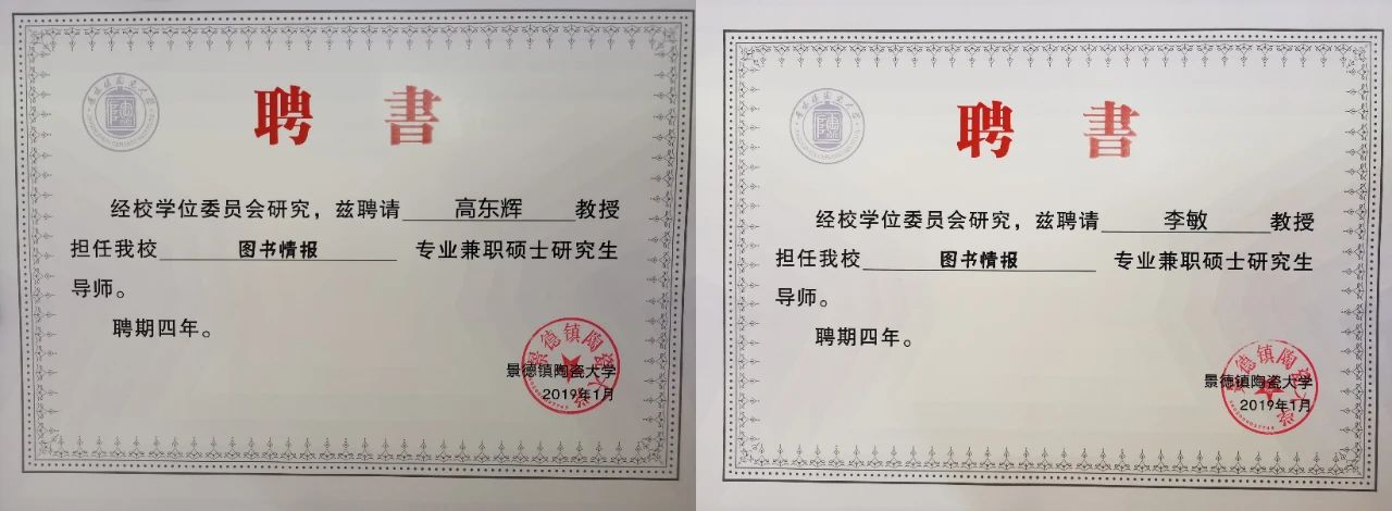 近日,景德鎮(zhèn)陶瓷大學聘請三聚陽光副總經(jīng)理高東輝、副總經(jīng)理李敏擔任其圖書情報專業(yè)的兼職碩士研究生導(dǎo)師。