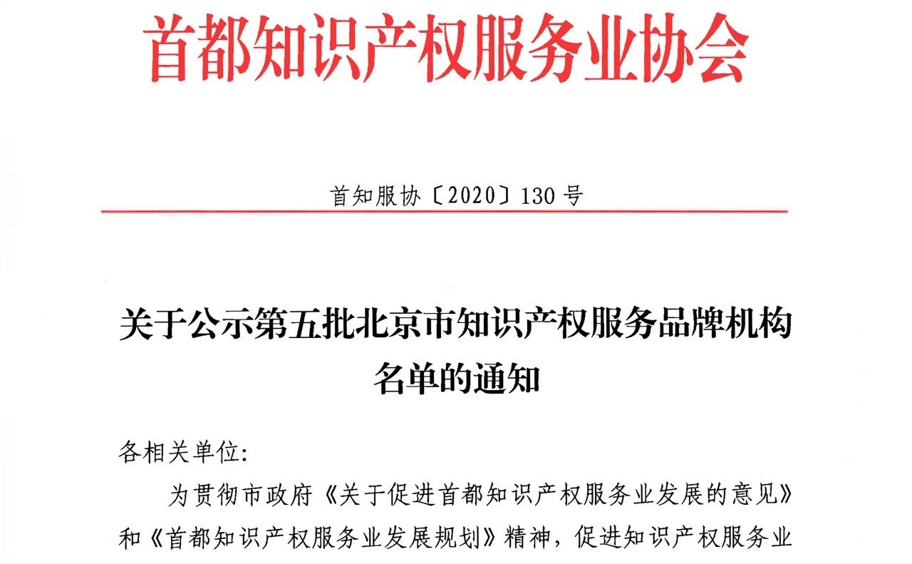 近日,首都知識產(chǎn)權服務業(yè)協(xié)會發(fā)布通知,公示了第五批“北京市知識產(chǎn)權服務品牌機構”名單,北京三聚陽光知識產(chǎn)權服務集團有限公司成功入選。