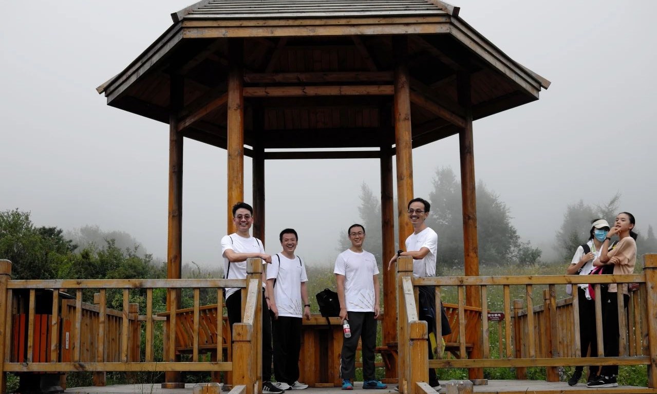 百花山山路十分陡峭,石階全長3.8公里,曲折蜿蜒,垂直海拔高度差更是接近800米,爬山阻力不小。同事們發(fā)揮團(tuán)結(jié)友愛的協(xié)作精神,相互鼓勵,一步一步向山頂前進(jìn),在歷經(jīng)1-2小時(shí)的堅(jiān)持后,陸續(xù)登頂。眼前的廣闊天地,伴隨著涼爽的清風(fēng),令人心曠神怡,大家紛紛拍照留念,記錄下這一刻的喜悅。