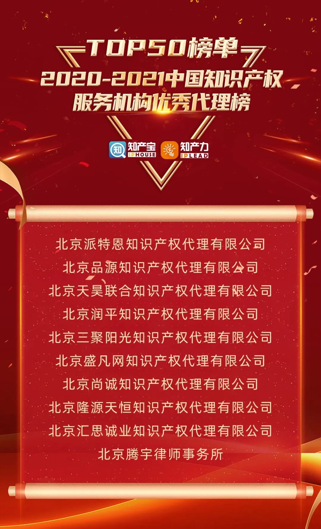 三聚陽光上榜“2020-2021中國知識產(chǎn)權服務機構優(yōu)秀代理榜TOP50”