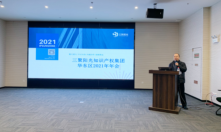 1月9日,三聚陽光知識產(chǎn)權(quán)集團(tuán)華東區(qū)2021年年會在無錫市物聯(lián)網(wǎng)產(chǎn)業(yè)知識產(chǎn)權(quán)運(yùn)營服務(wù)平臺圓滿舉辦。三聚陽光知識產(chǎn)權(quán)集團(tuán)總裁張建綱、集團(tuán)副總裁高東輝出席會議并致辭,華東區(qū)副總經(jīng)理鞏琦、代理部華東區(qū)總監(jiān)項(xiàng)凱、無錫三聚服務(wù)公司市場總監(jiān)劉海堯、蘇州分公司市場總監(jiān)李淋淋、南京三聚服務(wù)公司副總經(jīng)理李霞、杭州分公司市場營銷部副經(jīng)理張鳴、南京分公司代理部經(jīng)理湯蕎赫、蘇州分公司代理部經(jīng)理陳剛等參加年會。會議由華東區(qū)副總經(jīng)理鞏琦主持。
