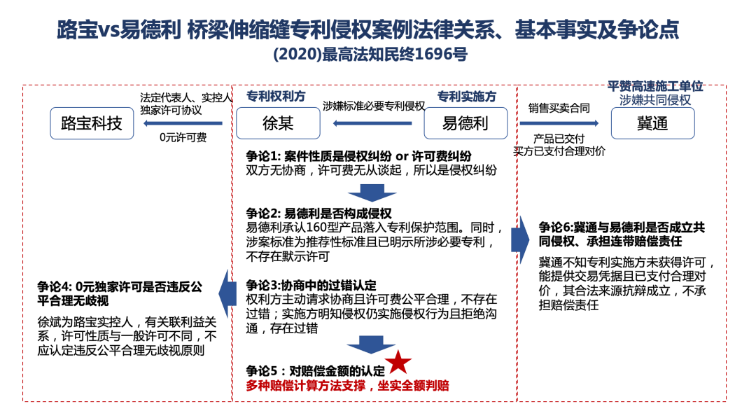 本案中,專利權(quán)人徐某及其任法定代表人的路寶公司主張,易德利公司為平贊高速公路工程提供的橋梁伸縮縫裝置系按照前述標準制造,構(gòu)成專利侵權(quán)。專利權(quán)人請求300萬元賠償,獲得最高人民法院全額支持。