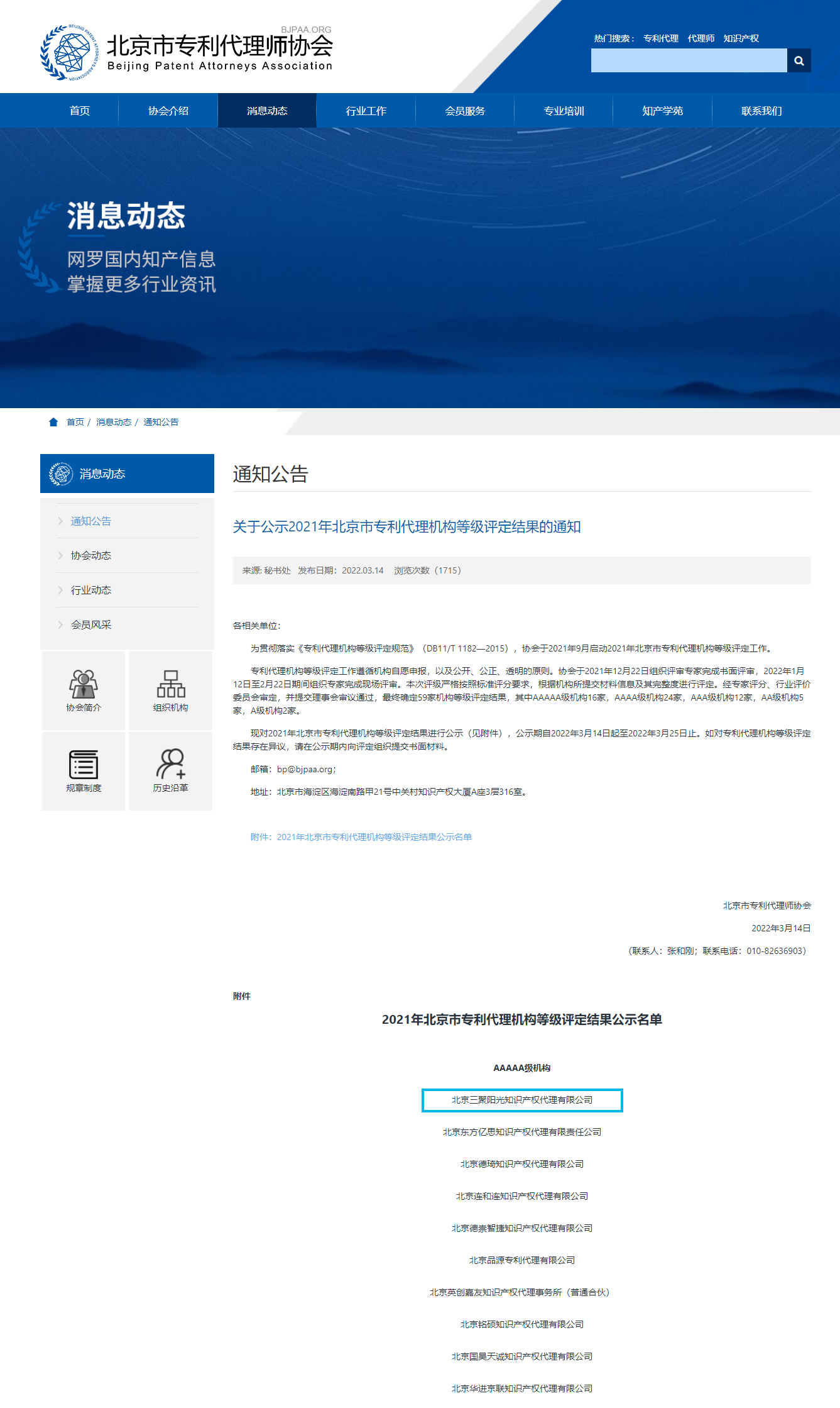 三聚陽光再評(píng)“北京市AAAAA級(jí)專利代理機(jī)構(gòu)”